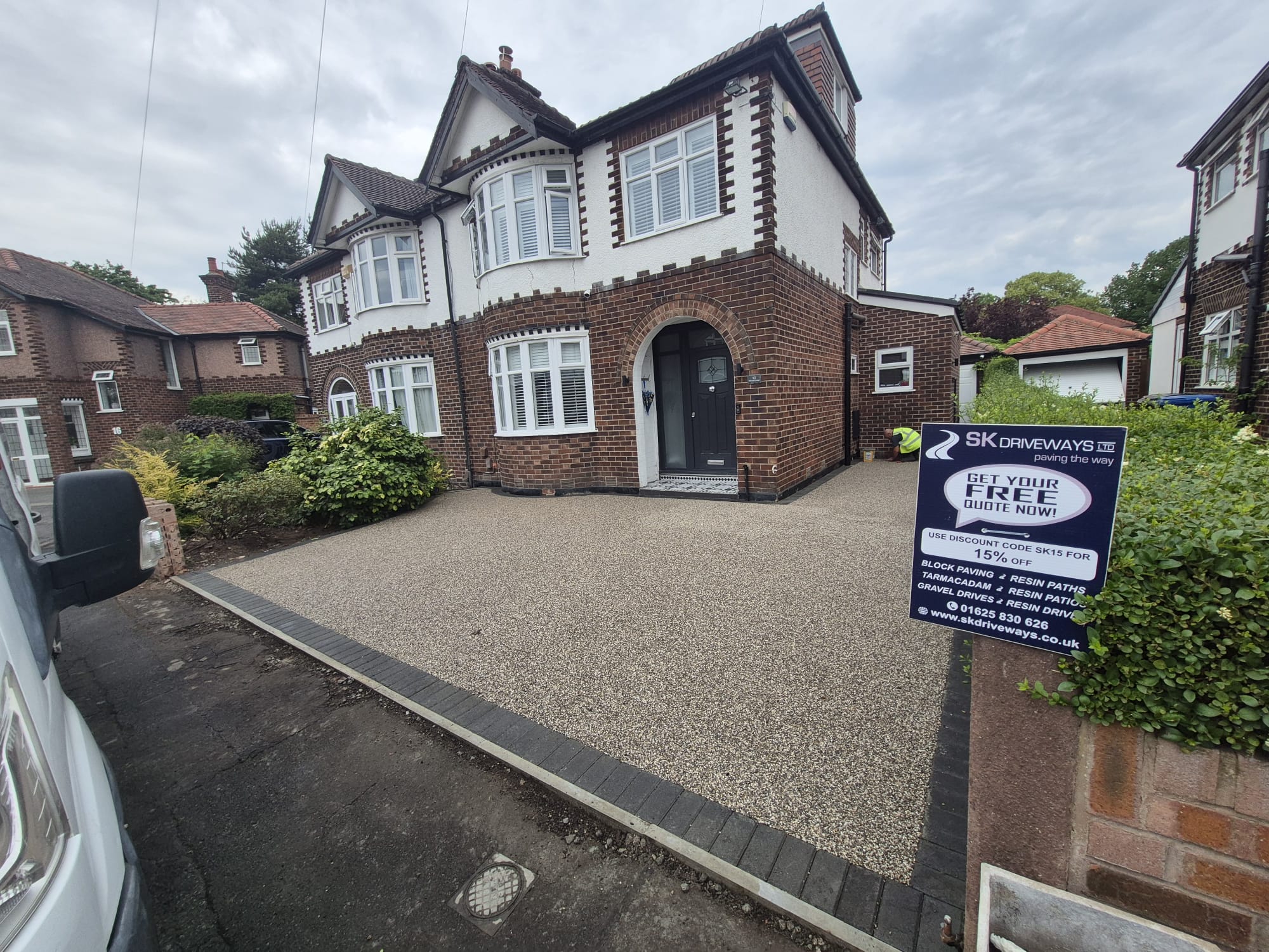 Resin driveways are a hugely popular and contemporary choice for homeowners in Bramhall and the surrounding Cheshire areas, delivering a sleek, seamless surface that dramatically boosts your property’s kerb appeal.